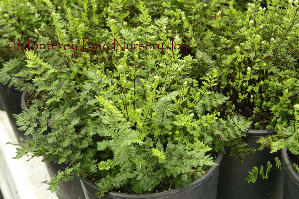 v. clivicola first crop more leaflets, undulate leaflet margins, denser, lower, finer textured, slightly grey green in color, and with dark central midribs. Choice, an excellent garden fern. To about 12" tall. rev 3/2012