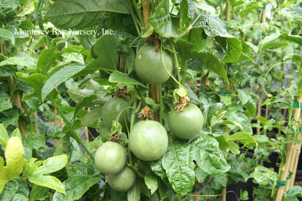 Passionfruit  (Passiflora edulis and other edible species) described here are those species and varieties which produce edible fruit. At this time our growing list is limited to just self-fruitful P. edulis varieties but in the past we have featured P. mollissima and P. ligularis. rev 9/2020