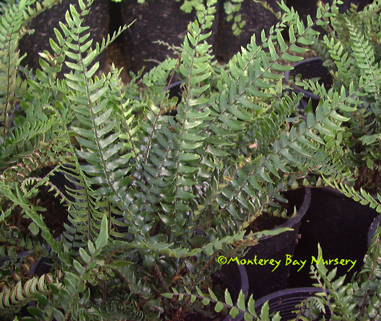 'Rotundum Cristatum'  young plants  a rotund crested form, with relatively short fronds that are extremely lacy in appearance and bright, bright green. Selected form #2594 of P. setiferum. rev 8/2007