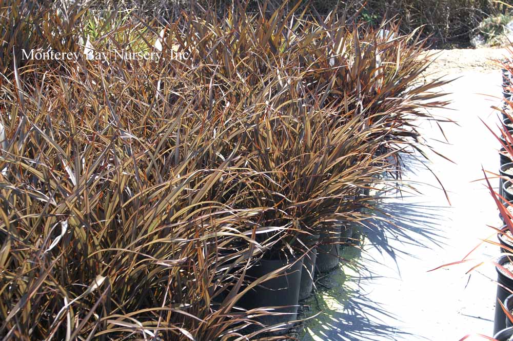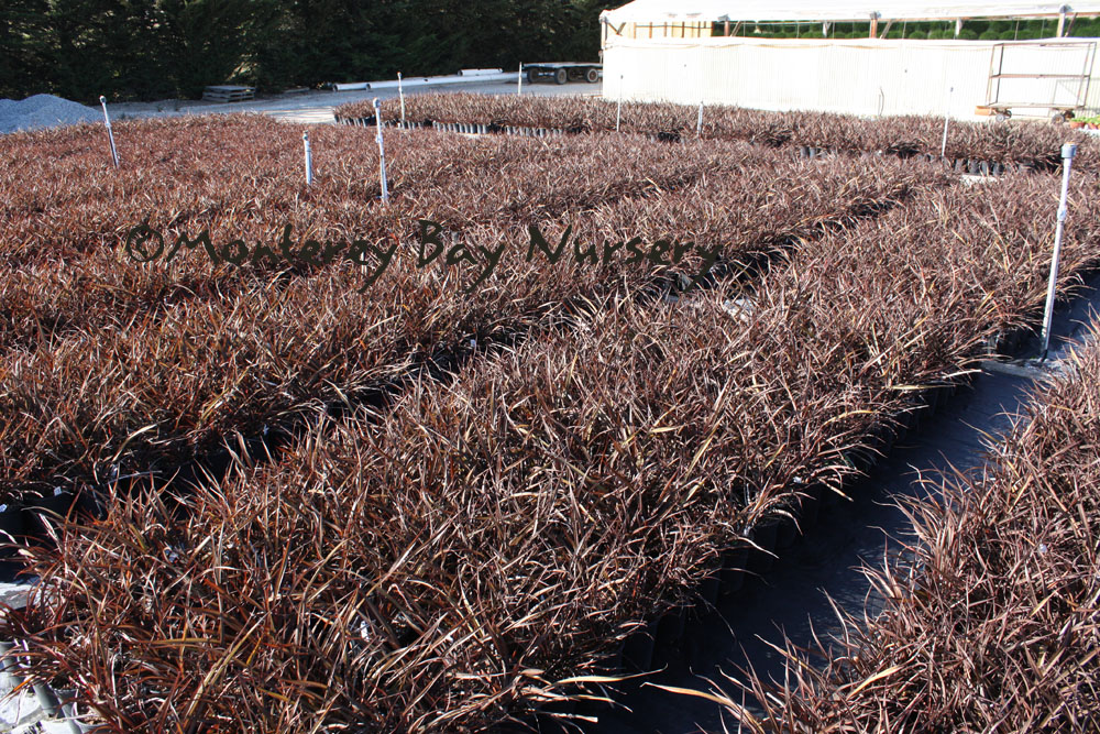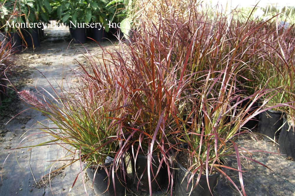 ‘Eaton Canyon’  nursery plants  a compact grower, to 18" tall, with dark red foliage. A probable hybrid of P. setaceum ‘Cupreum’ and P. setaceum. Graminae/Poaceae. rev 9/2020