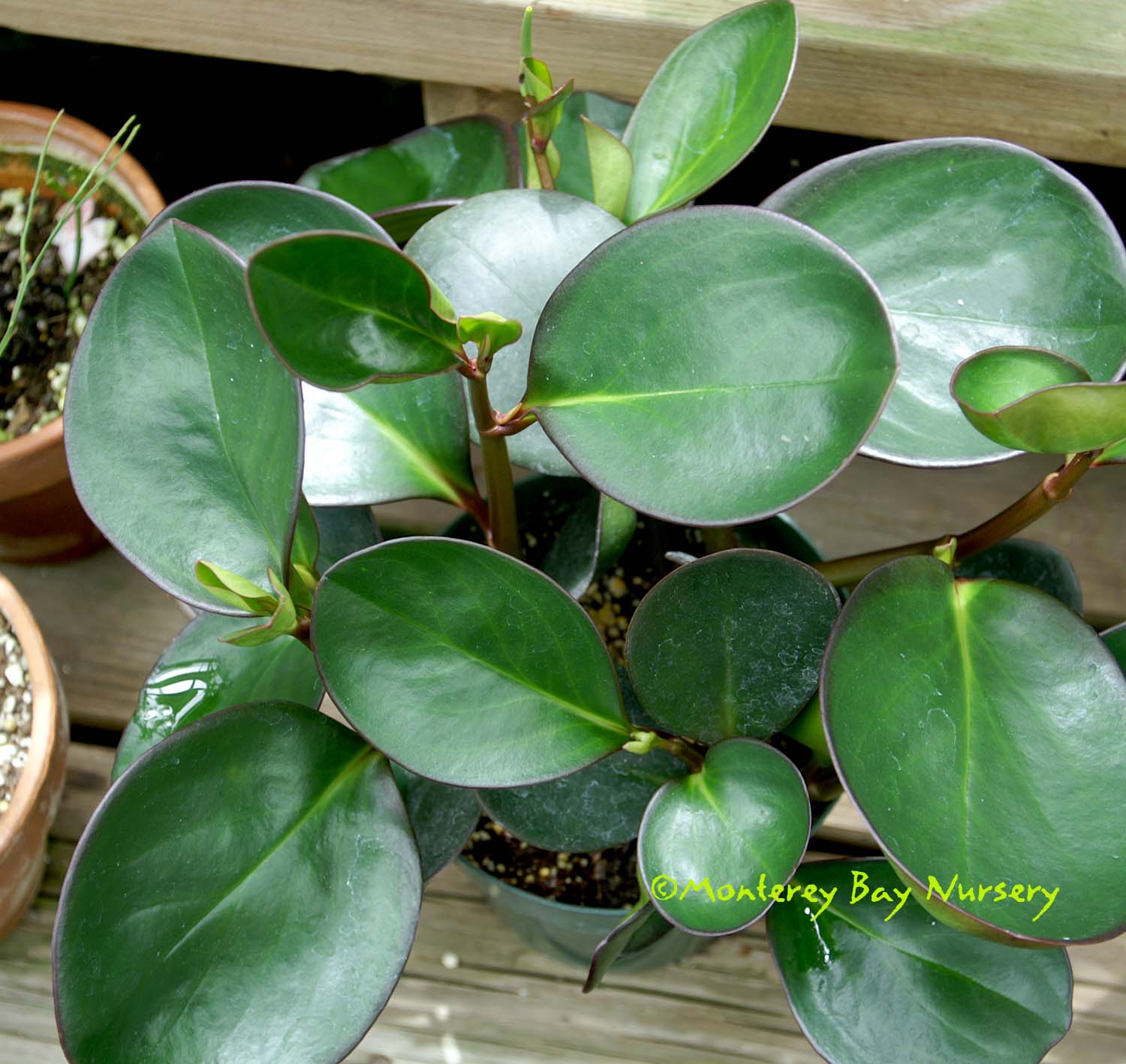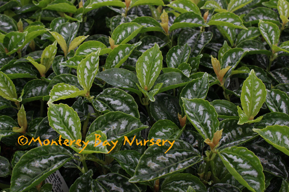 involucrata 'Moon Valley'   why you want it    a study in beaded perfection, green green green leaves, flushed deep burgundy in the centers with age minutely stippled with micro-tubercles with a carefully beaded edge. I always have to look at them when they go by on the order-pulling trailers, I find that leaf mesmerizing. To about 12" tall and wide, grow in bright conditions, keep it above 50°F, let go a little dry between watering. This is classified by some as P. mollils. rev 4/2021