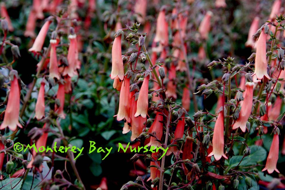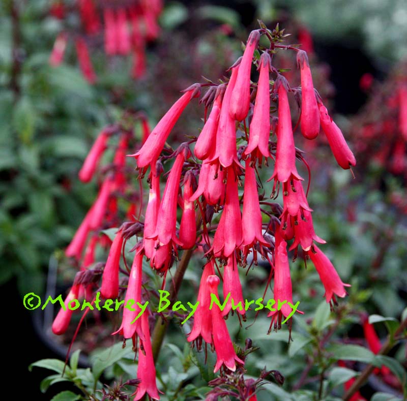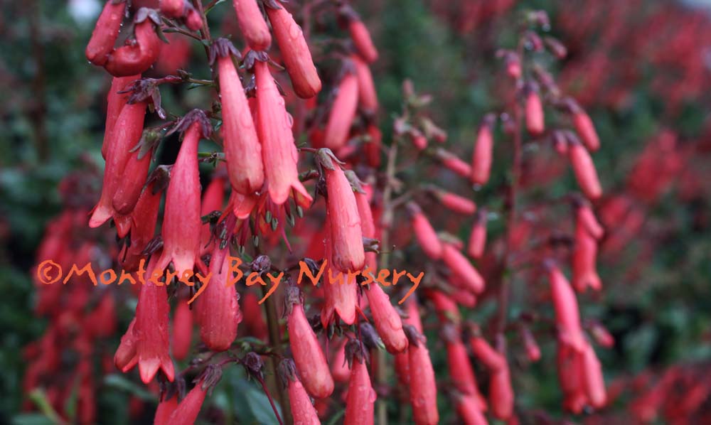 'Tubular Bells Red'   grand flowers  large, red flowers with white striping inside, held on strong stems to about 18-20" tall. This long-blooming perennial is of Mexican origin, not a native like so many other recent introductions, and is more forgiving of richer garden soils and warm-season watering. Sun or part shade, average watering to infrequent watering. Sunset zones 8-9, 16-22/USDA 9. rev 7/2014