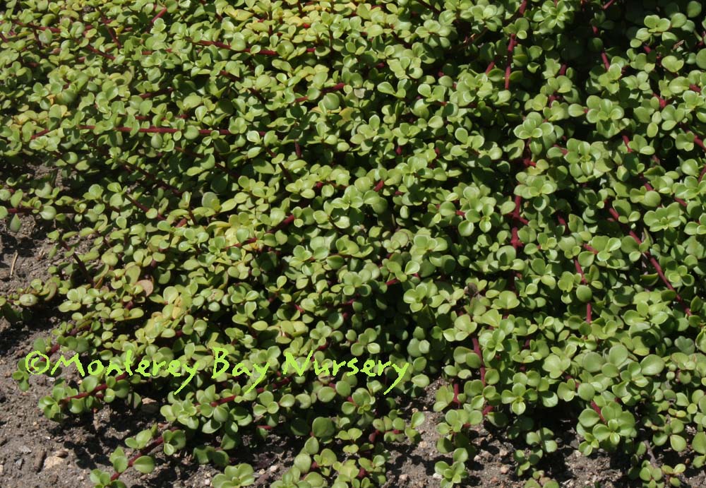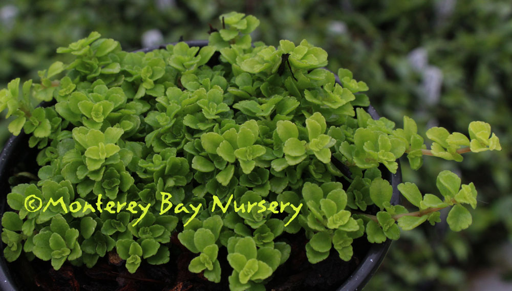 deppeana  4" plant   a nice compact mass of tiny, round, clean green leaves closely set on trailing to low mounding branches. Looks something like a bigger, more open version of Baby's Tears. To a couple inches high, probably mounding higher with age if not cut back. rev 6/2021