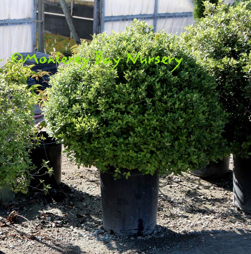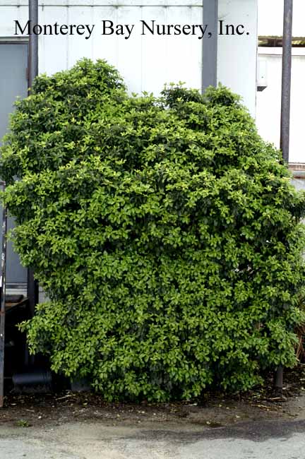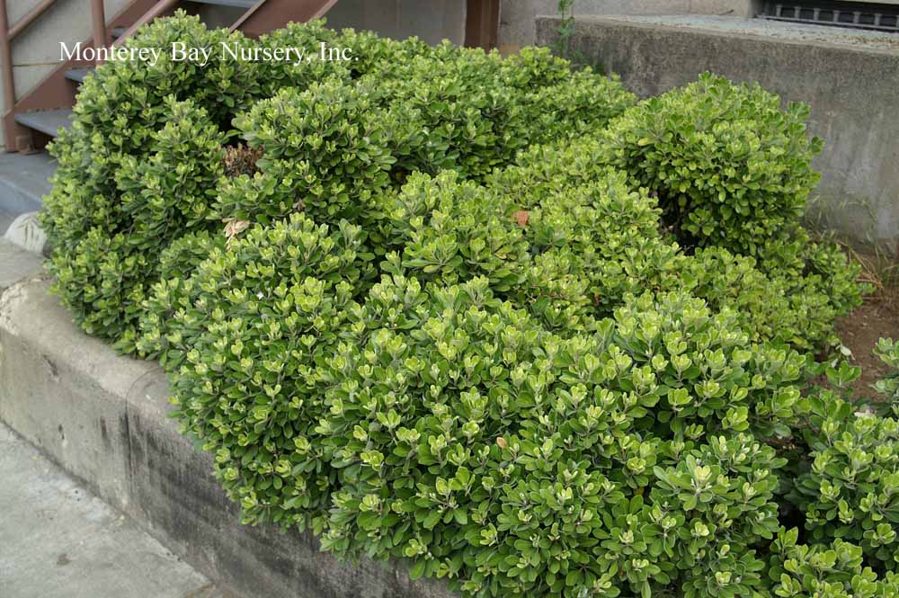 'Elfin'  Manuel's hedge, sheared to vertical    unclipped typical shape, 5 gal    a low, spreading form with smallish leaves, this is another great choice for restricted areas or where not much height is desired. Fine leaf texture makes clipping and shearing easy and hard to notice. rev 6/2014