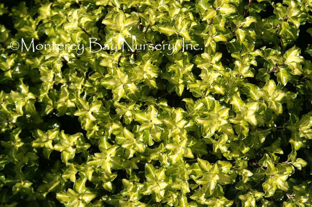 'Gold Star'  (not currently in production) foliage detail  tight, compact growth, with leaves featuring chartreuse to gold centers against darker green edges. Classy, charming. Ultimate size unknown but this is not going to be a large grower, probably to only 6-10' at full maturity. rev 2/2021
