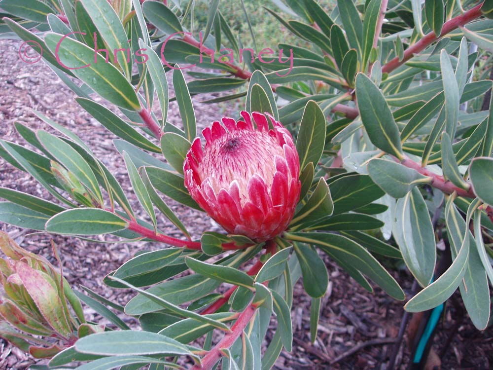 Protea  shrubs and shrubby groundcovers known for spectacular flowers. Need typical Mediterranean-plant climate and culture including dry summers, good drainage, infrequent, careful summer watering, lean, mineral soils, and usually no feeding. South Africa. Proteaceae. rev 9/2011