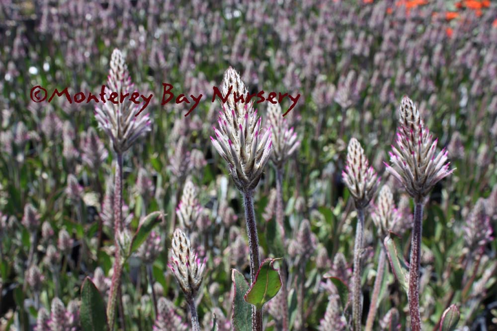 Ptilotus exaltatus 'Platinum Wallaby' PP20785  MULLA MULLA (not currently in production)  flowers   a tough Australian perennial (this form, at least), comprised mostly of upright, feathery pink heads of flowers. The blossoms themselves are humble, but the flower head is silvery and quite attractive. This form is adapted to alkaline soils and is truly perennial though still short-lived. Sun, very drought tolerant when fully established, to 12-18" tall and wide. Sunset zones 8-9, 14-24/USDA zone 9. Australia. Amaranthaceae. rev 2/2021